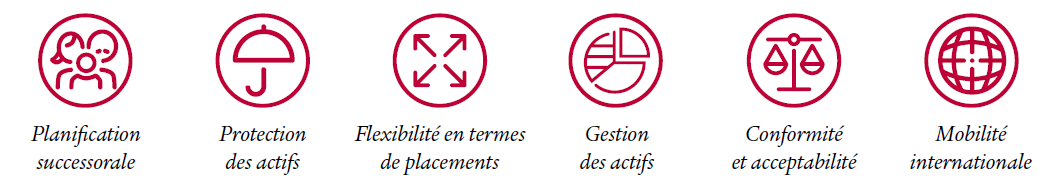 Notre offre, de planification patrimoniale et successorale, repose sur les avantages de l’assurance vie et la flexibilité des règles d’investissement luxembourgeoises.