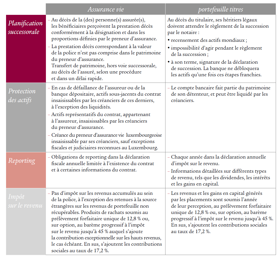 Notre offre repose également sur une expertise d’ingénierie patrimoniale multijuridictionnelle et sur le cadre prudentiel luxembourgeois protecteur des intérêts patrimoniaux du souscripteur.